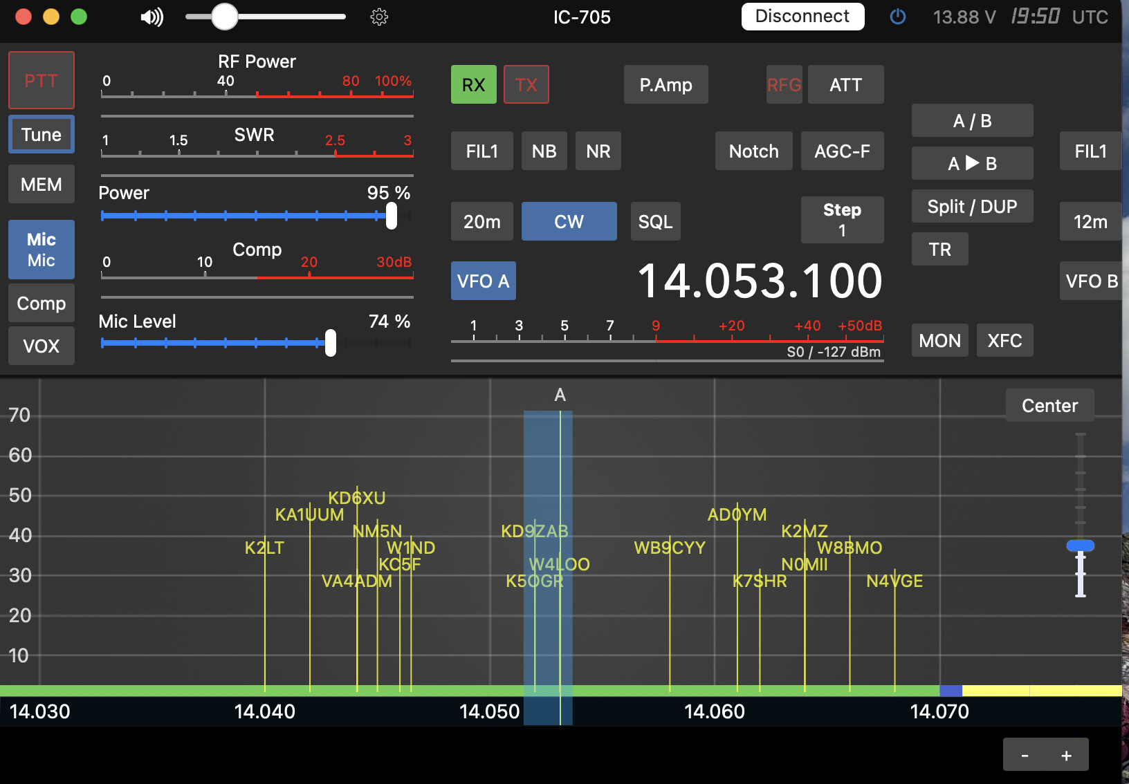 Here’s a cool look at 20m POTA right now, I’m sitting in the kitchen running SDR-Control back to the IC-705 up in the study.