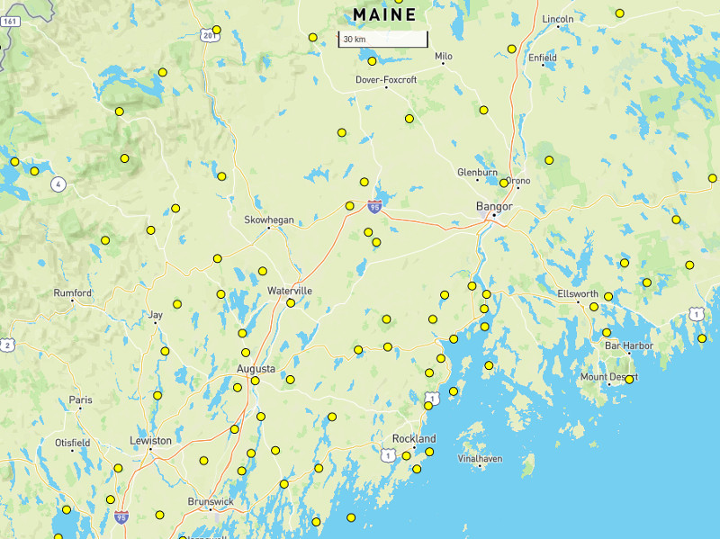 It doesn’t look to me like people living there have too few options compared to other places in the USA. Park density looks similar to my area and travel times may be similar. Acadia NP is less than 8 miles from here but longer than an hour’s drive.